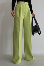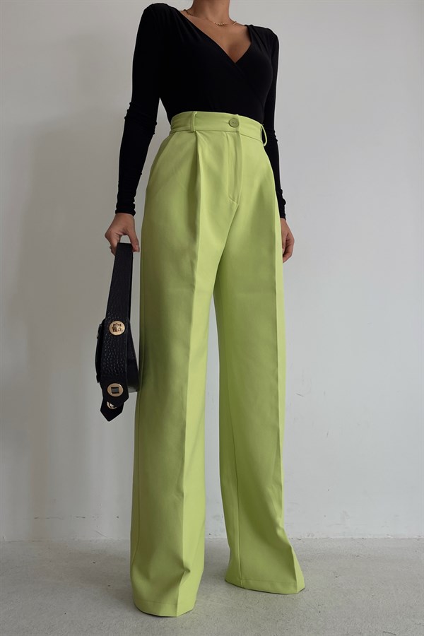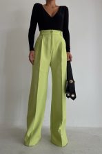 High Waist Basic Palazzo Trousers Neon Yellow -11746