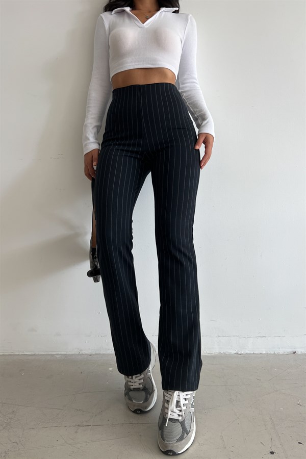 Spanish Leg Striped Trousers Navy -11773