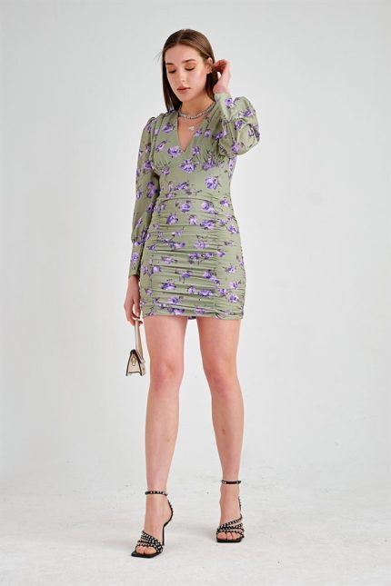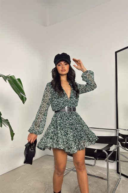 Belted Flower Dress Green
