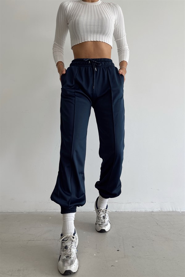 Elastic Waist Highwaist Tracksuit Navy Blue -27057