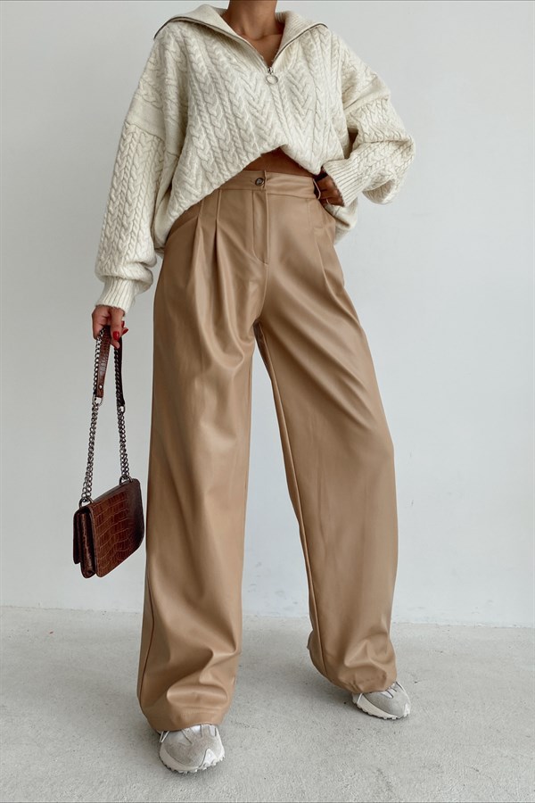 The trousers models that you can choose for office or daily wear will add elegance to your style. In the new season, you can add color to every day with the striking trousers models, and activate your combinations with the High Waist Leather Trousers model. The trousers models from the online catalog of Mylove boutique will be your favourite.