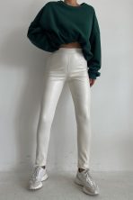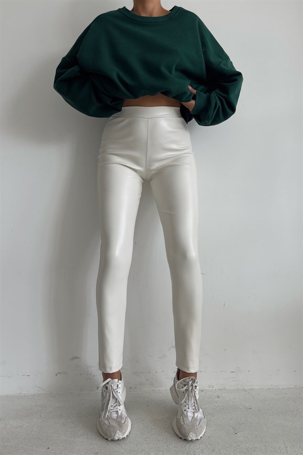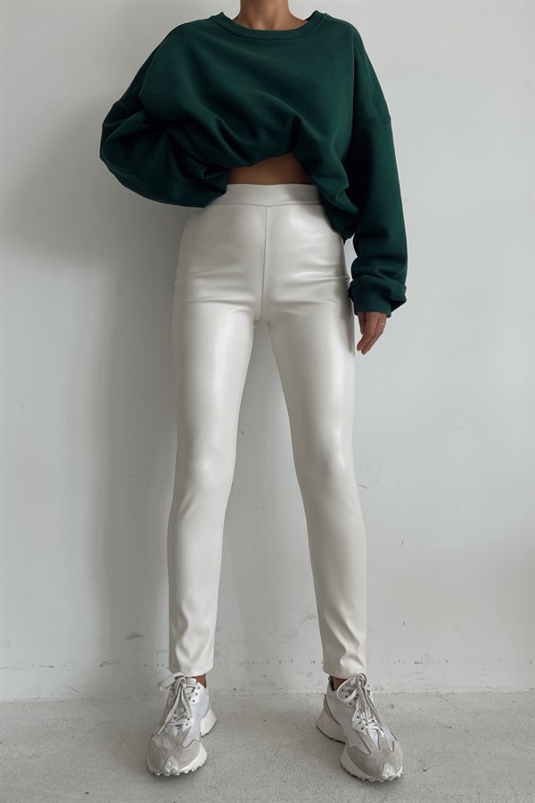 High Waist Skinny Leather Pants Ecru -11754