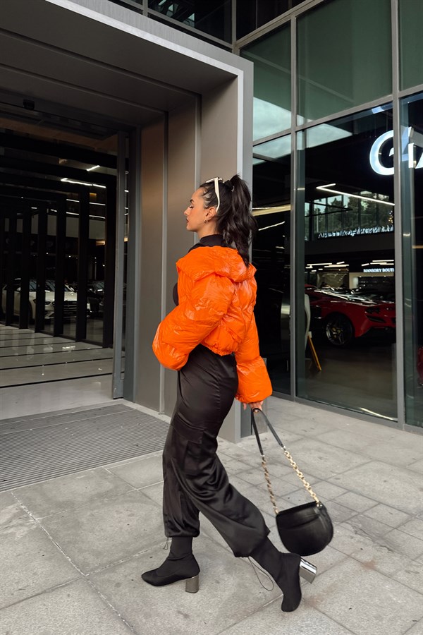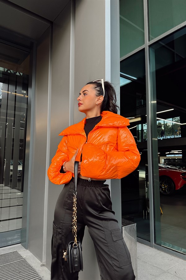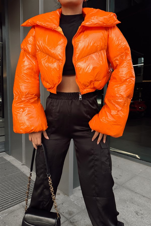 Patent Leather Inflatable Coat Orange