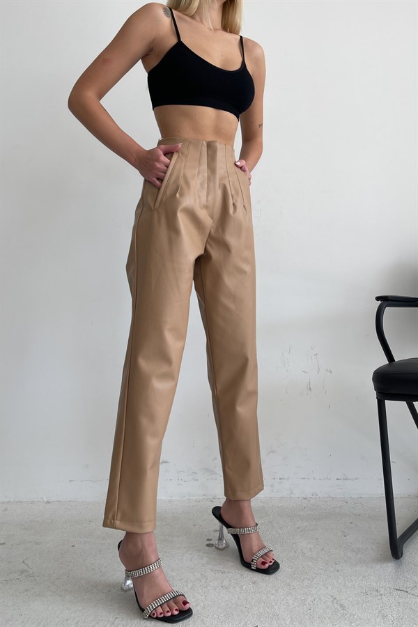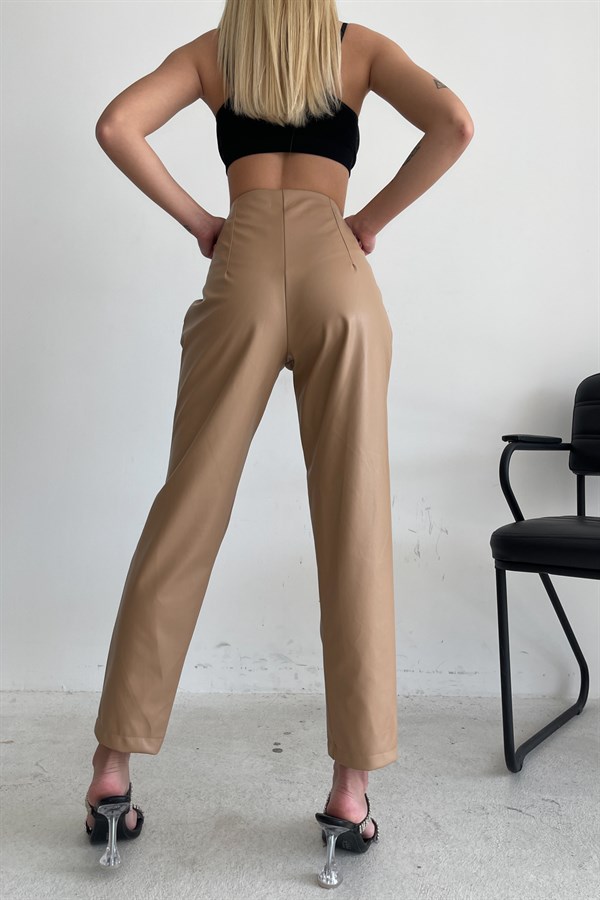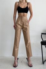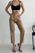 Pliers High Waist Leather Trousers Mink -11777