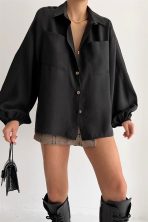 Be the first to review “Sleeve Pleated Pocket Detailed Shirt Black” Cancel reply