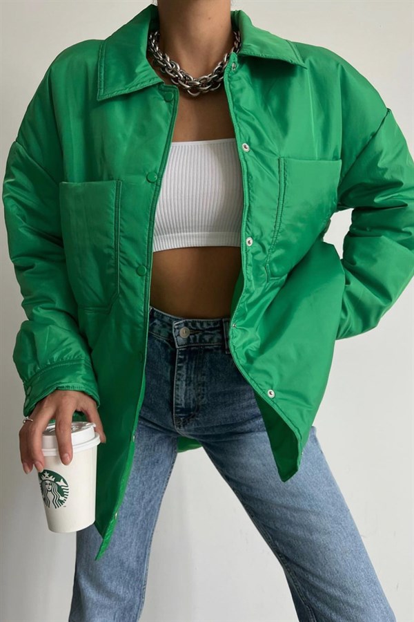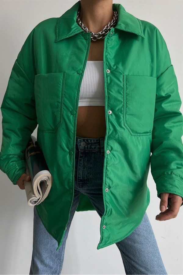 Snap Closure Pocket Coat Green