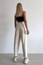 High Waist Leather Pants Beige