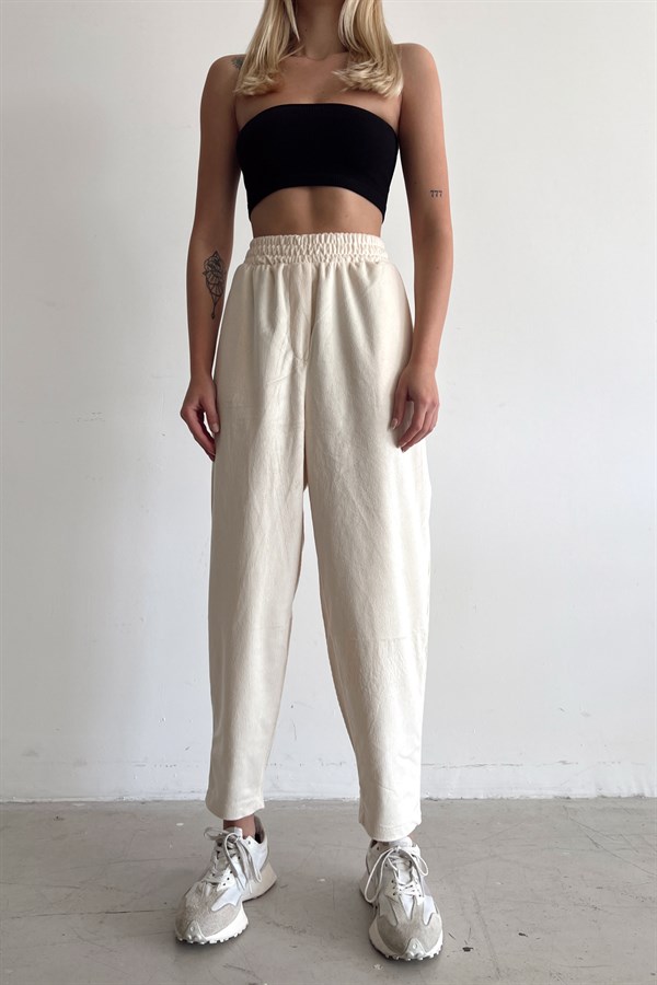 Soft Velvet Jogger Pants Ecru -11713